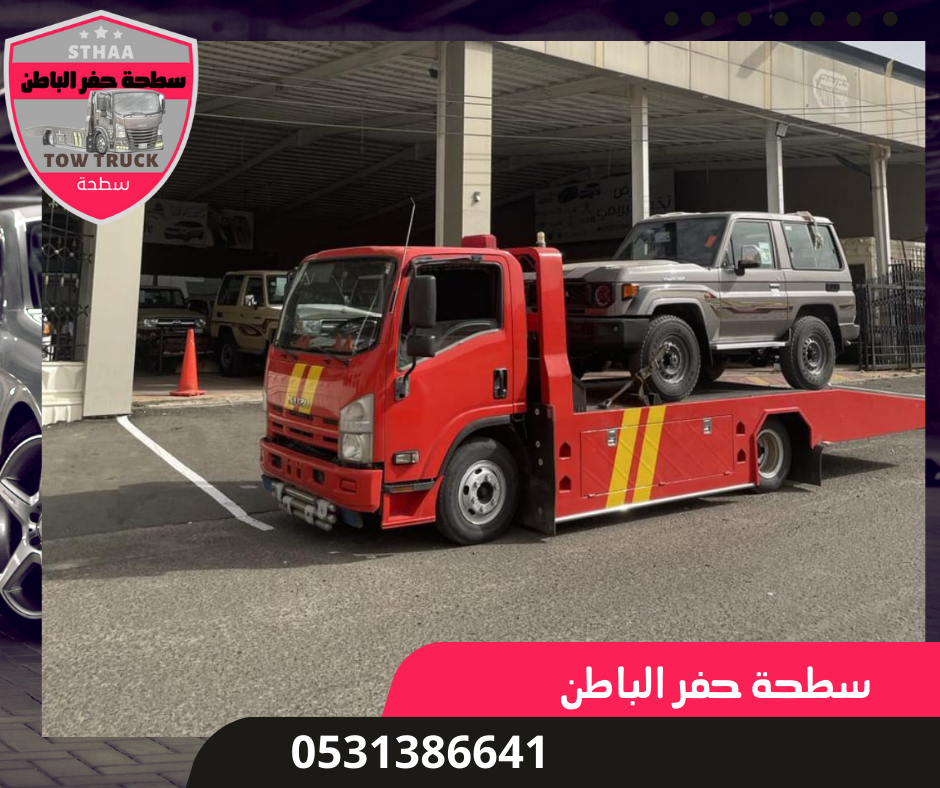 مرحباً بكم في موقع “سطحة حفر الباطن”، نقدم خدمات نقل السيارات بكفاءة واحترافية في جميع أنحاء حفر الباطن والمناطق المحيطة بها. نحن هنا لتلبية جميع احتياجاتك في حالات الطوارئ أو نقل السيارات بجدول زمني محدد. اتصل بنا على الرقم 0531386641 للحصول على خدمة سريعة وآمنة.
