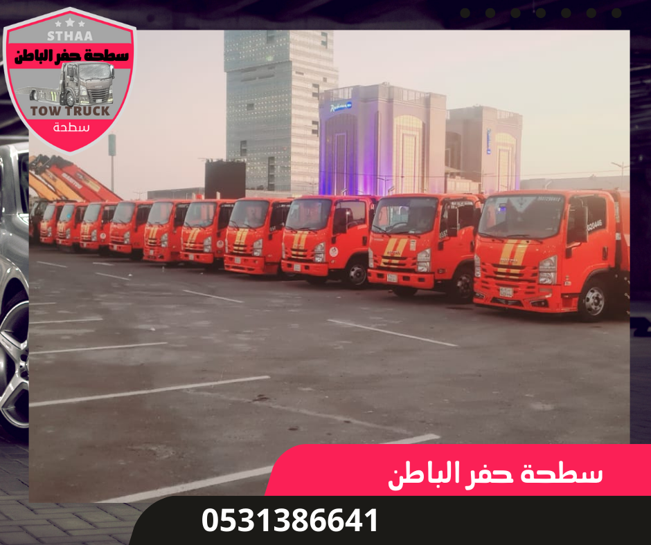 تعد خدمة "سطحة حفر الباطن" الخيار الأمثل لنقل السيارات بكفاءة وأمان في مدينة حفر الباطن والمناطق المحيطة بها. سواء كنت بحاجة إلى نقل سيارتك المعطلة إلى ورشة الصيانة أو نقل سيارتك الفاخرة بحذر، فإن فريقنا المحترف مستعد لتلبية جميع احتياجاتك بسرعة وموثوقية. نحن متواجدون على مدار الساعة، مما يضمن لك الوصول السريع في حالات الطوارئ أو عند الحاجة لنقل سيارتك في أي وقت.